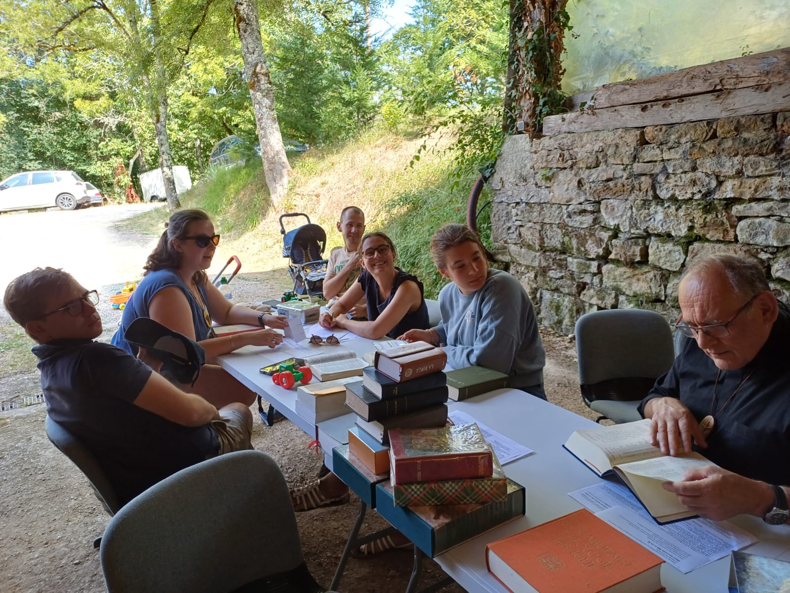 Avec le renouveau de la Fraternité des Messagers de la Bonne Nouvelle, nous inaugurons notre première journée de détente : j’ai accepté d’en assurer l’organisation. Tout Seigneur, tout honneur, nous commençons par la messe à l’Abbaye d’En Calcat. J’avais pris la peine de prévenir quelques jours avant de la présence du Père Serge pour concélébrer, et heureusement, car ils sont arrivés quelques instants avant la sonnerie de la cloche !