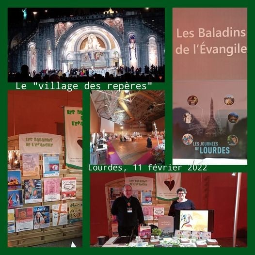 Février 2022, Les Baladins de l’Évangile tenaient un stand à Lourdes pour présenter l'association et ses activités aux directeurs de pèlerinages.
