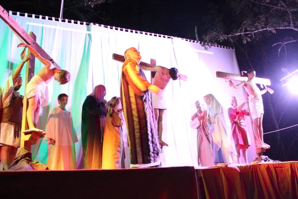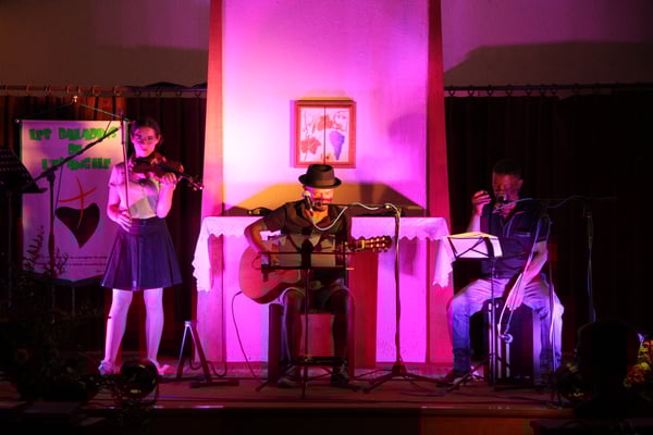 Une trentaine de spectateurs avaient fait le déplacement pour assister au spectacle. Mélange des spectacles de "Marie" et "Passion" auquels trois nouvelles scènes ont été écrites, enregistrées, mises en lumière et en scène durant la semaine.