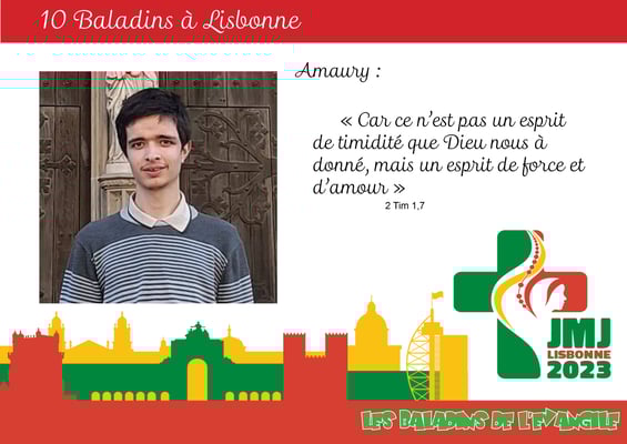 En juillet 2023, quatre "jeunes" Baladins (dont Estelle et Jérémie) partiront en R5 participer aux JMJ à Lisbonne (Portugal).