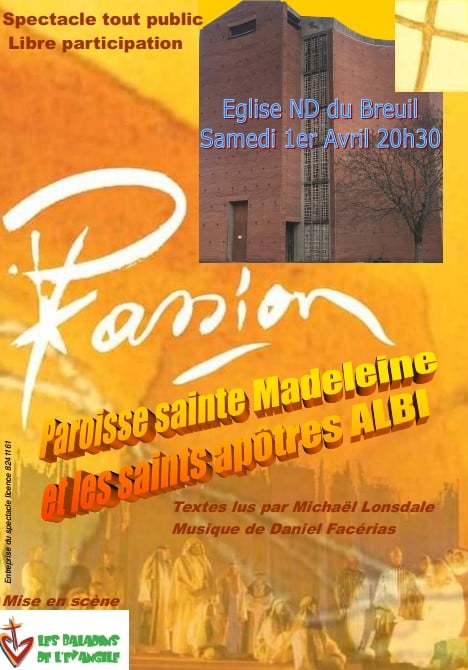 Les jeunes des paroisses Ste Madeleine et les Saints-Apôtres d'Albi ont présenté le spectacle "Passion" en collaboration avec les Baladins de l'Evangile à l'église Notre-Dame du Breuil.