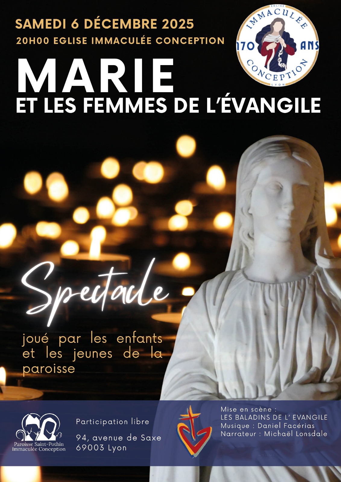 En cette année 2025 une belle et grande dame est à l’honneur : l’église de l’Immaculée Conception fête ses 170 ans ! A cette occasion, un spectacle se prépare avec l’équipe des Baladins de l’Evangile dont le thème sera « Marie et les femmes de l’Évangile » le samedi 6 décembre à 20h00.